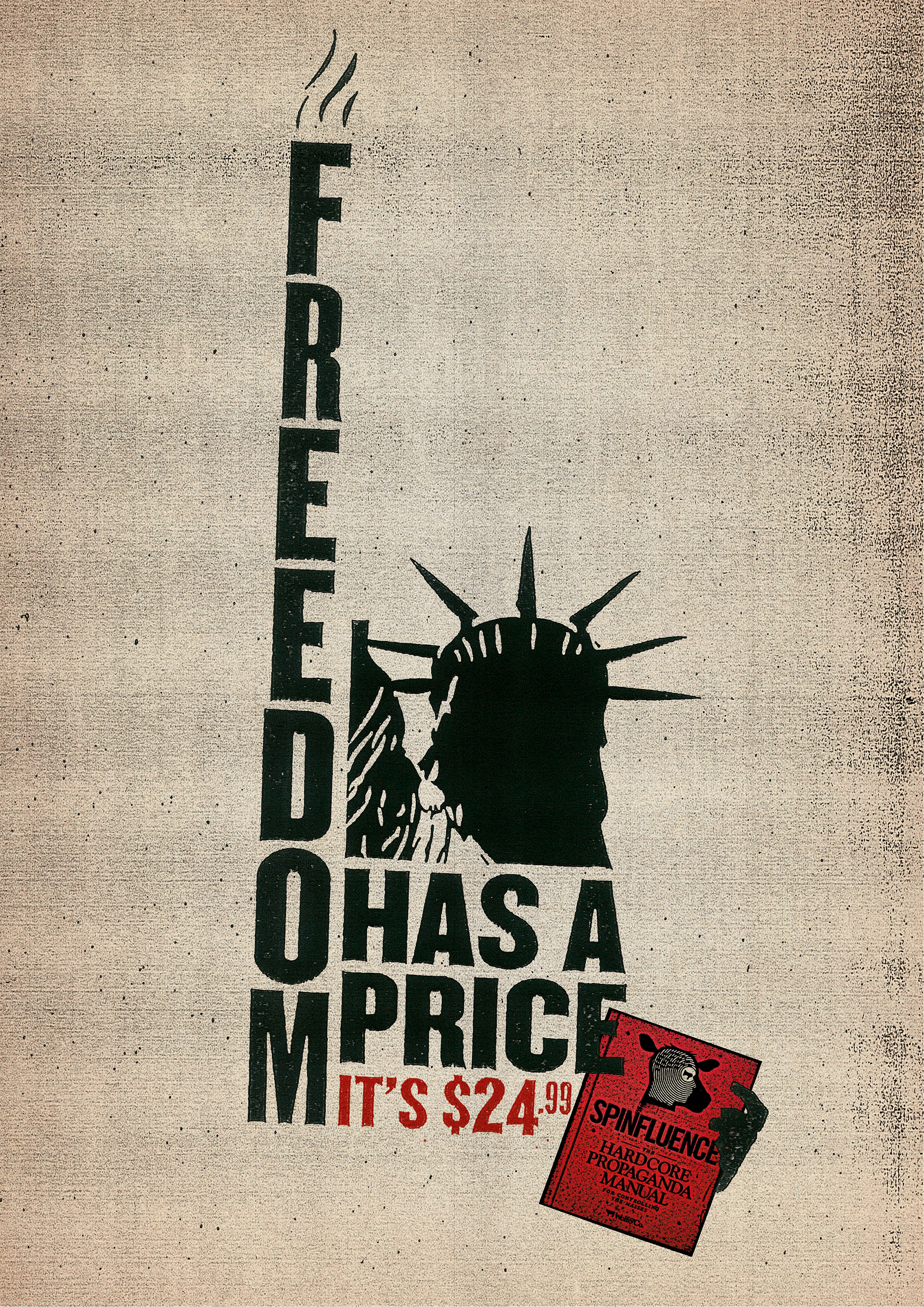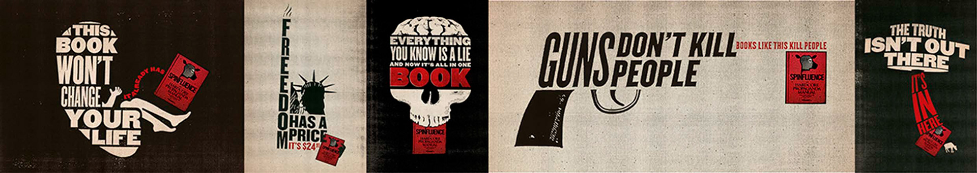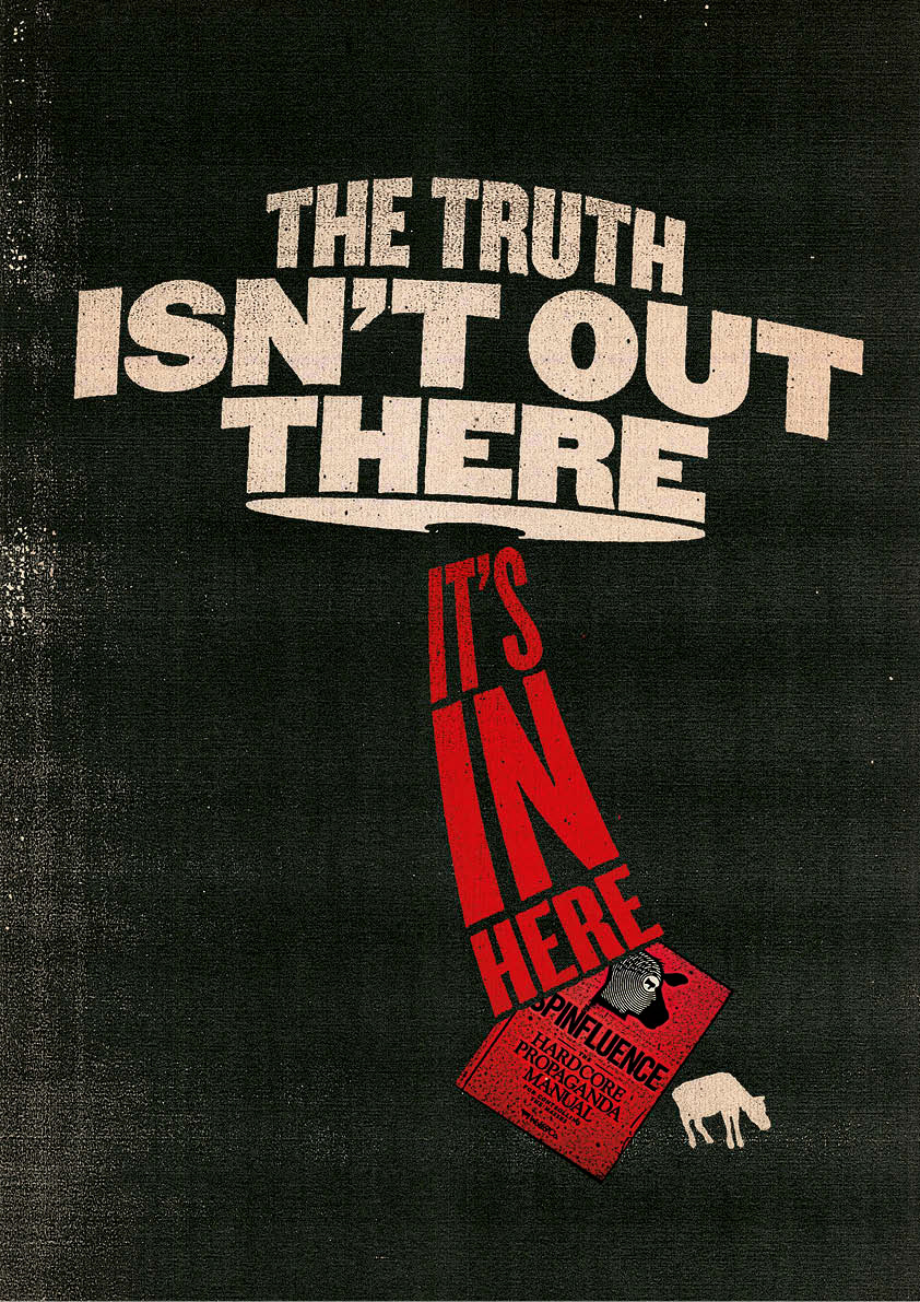 Typographic posters for Spinfluence. The Hardcore Propaganda Manual for Controlling the Masses